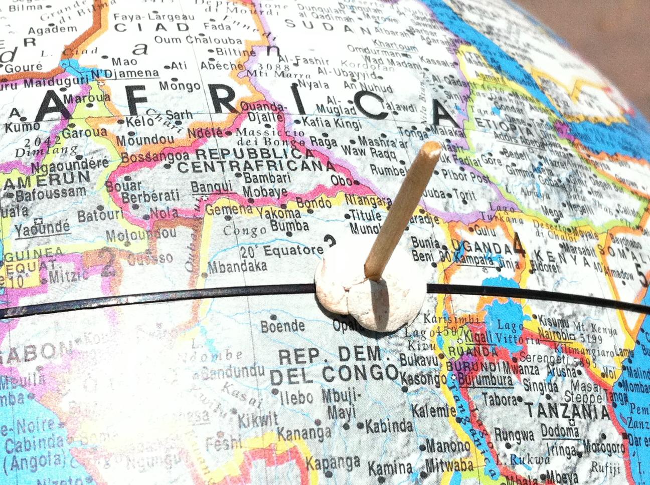 Latitudine, 42°21'42"84 N. Longitudine, 14°8'20"04 E. Diametro mappamondo cm 30
