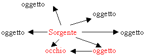 percorso della luce determina la relazione tra sorgente - oggetto – occhio