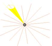 spazio. L'emissione viene rappresentata dai raggi, semirette uscenti in