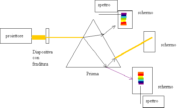 arcobaleno, lo SPETTRO. Questo succede perché la luce è formata da tanti colori , e quando entra nel prisma viene “smontata” dal prisma e quindi si crea lo spettro.