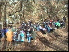 ci siamo fermati in una radura pieni di banchi come a scuola. La