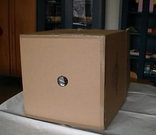 scatolone fissa con del nastro adesivo la lente. in coincidenza del